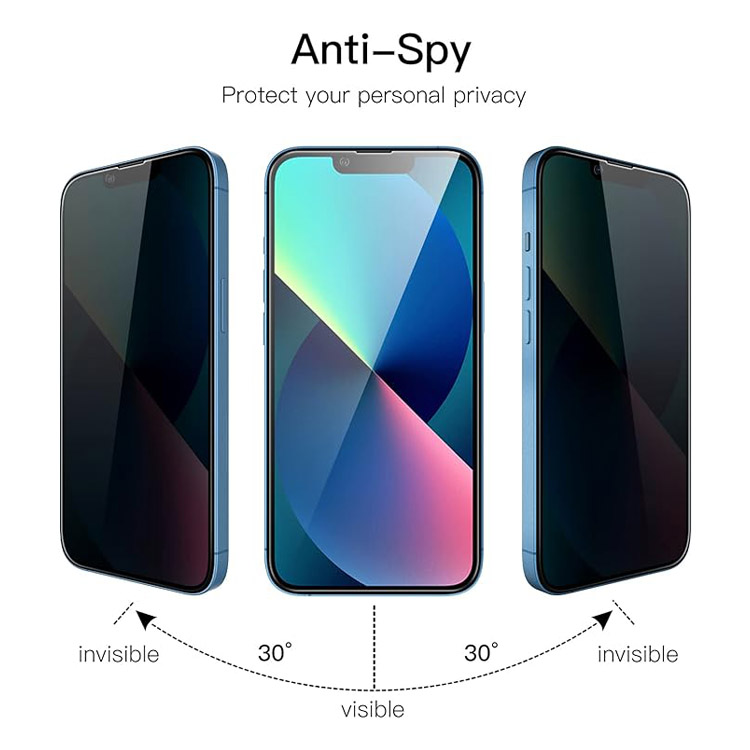 Crafted for iPhone 13/13 Pro (6.1-inch), this screen protector limits visibility to those directly in front, shielding your private data from onlookers, Covering the screen entirely, this protector has a precise speaker cutout. It offers full-screen protection, safeguarding the front camera and sensor effectively, This tempered glass film, rated 9H for high hardness, shields your screen from daily wear, minor drops, and accidental damage, preserving its pristine condition against scuffs and scratches, The privacy film slightly dims the screen without too much darkness, with adjustable brightness for comfort. It stays highly responsive to touch, ensuring a pleasant viewing experience.