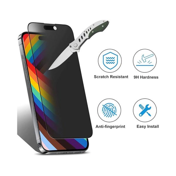 Tailored for iPhone 14 Pro 6.1-Inch, this screen protector limits visibility to those in front, shielding your private data from onlookers effectively, With complete edge-to-edge coverage, this protector includes a precise speaker cutout and shields the front camera and sensor for full-screen protection, This 9H tempered glass film is scratch-resistant, protecting your screen from daily wear, minor drops, and accidental damage, keeping it pristine and free of scuffs, The anti-spy film slightly dims the screen, yet maintains adjustable brightness for comfort. It’s highly responsive to touch, ensuring ease of use.